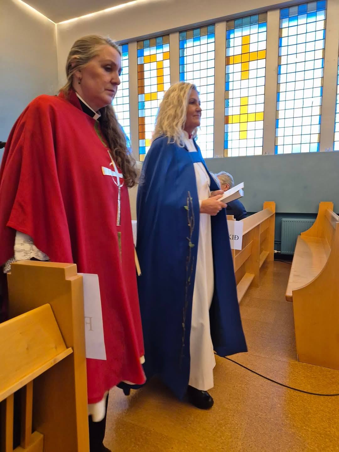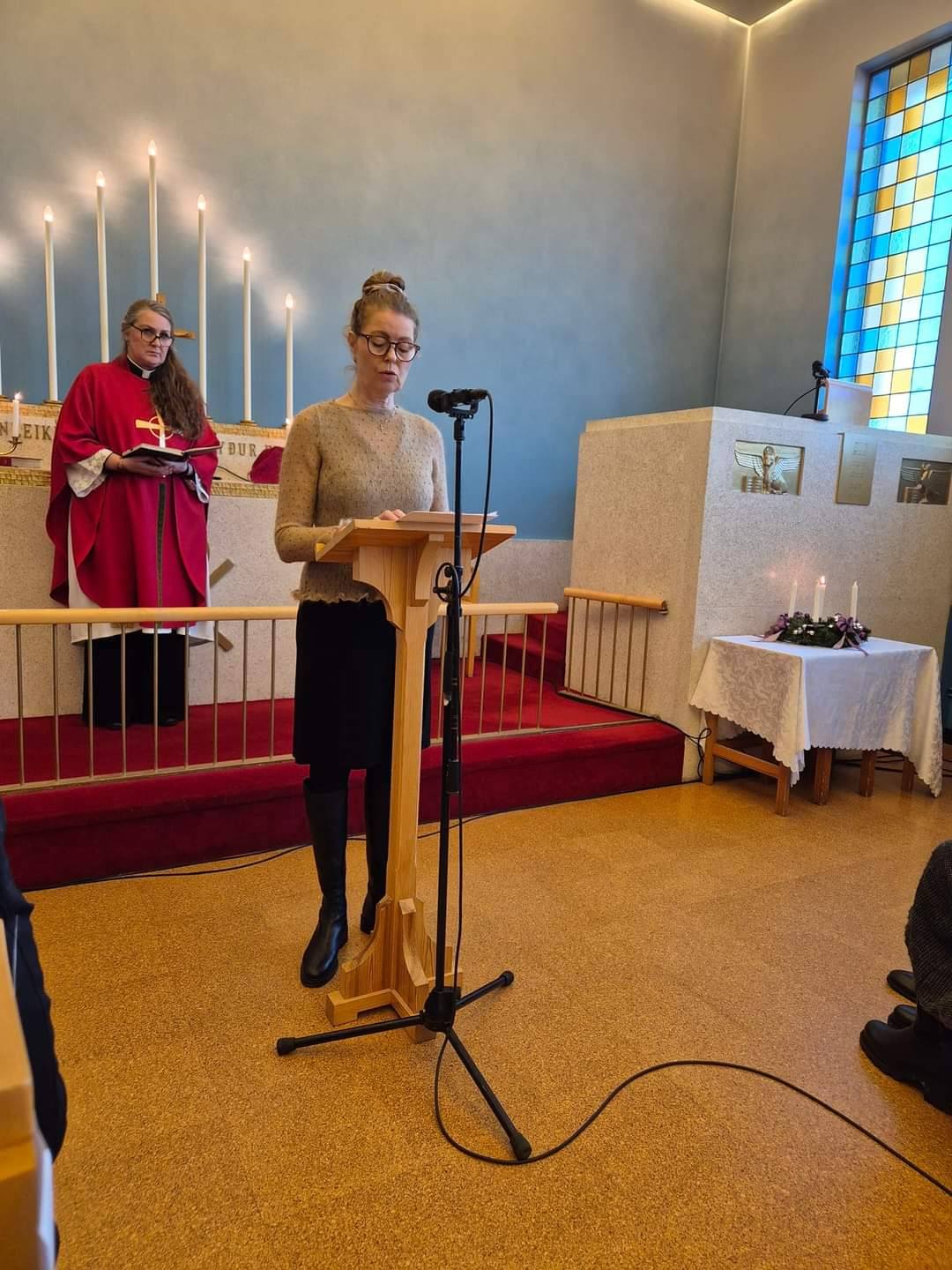 Biskup Íslands Gudrun Karls Helgudóttir og Ása Björk Ólafsdóttir prestur í Árborgarprestakalli þjónuðu fyrir altari.