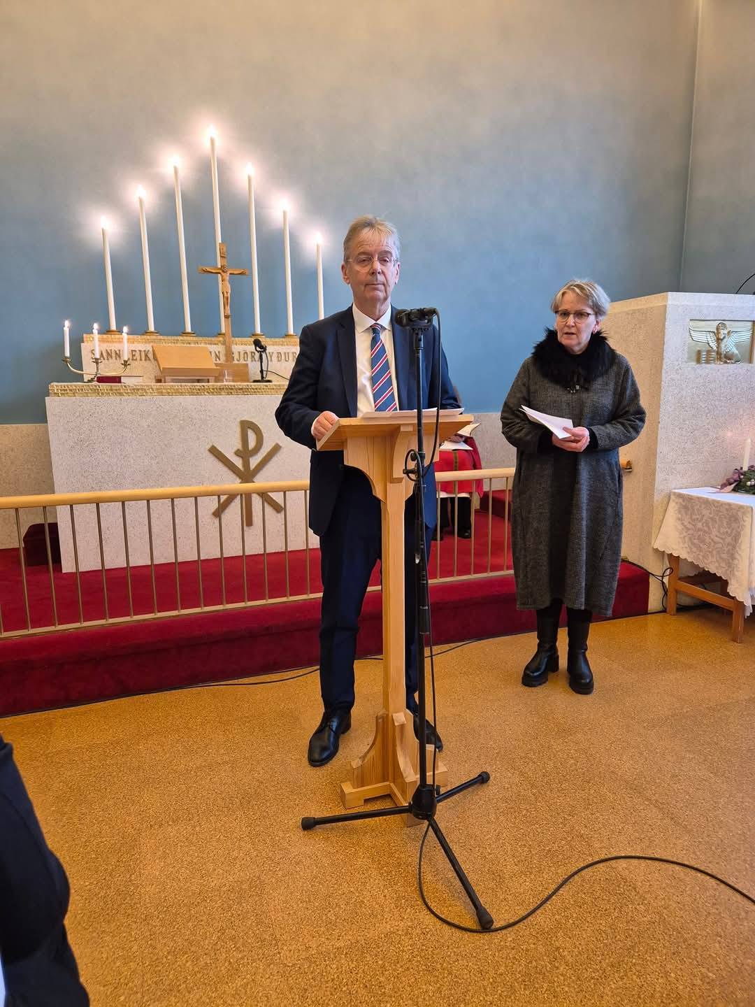 Dr. Jón Atli Benediktsson rektor Háskóla Íslands og dr. Arnfríður Guðmundsdóttir deildarforseti Guðfræði og trúarbragðafræðideildar Háskólans lásu ritningarlestra.