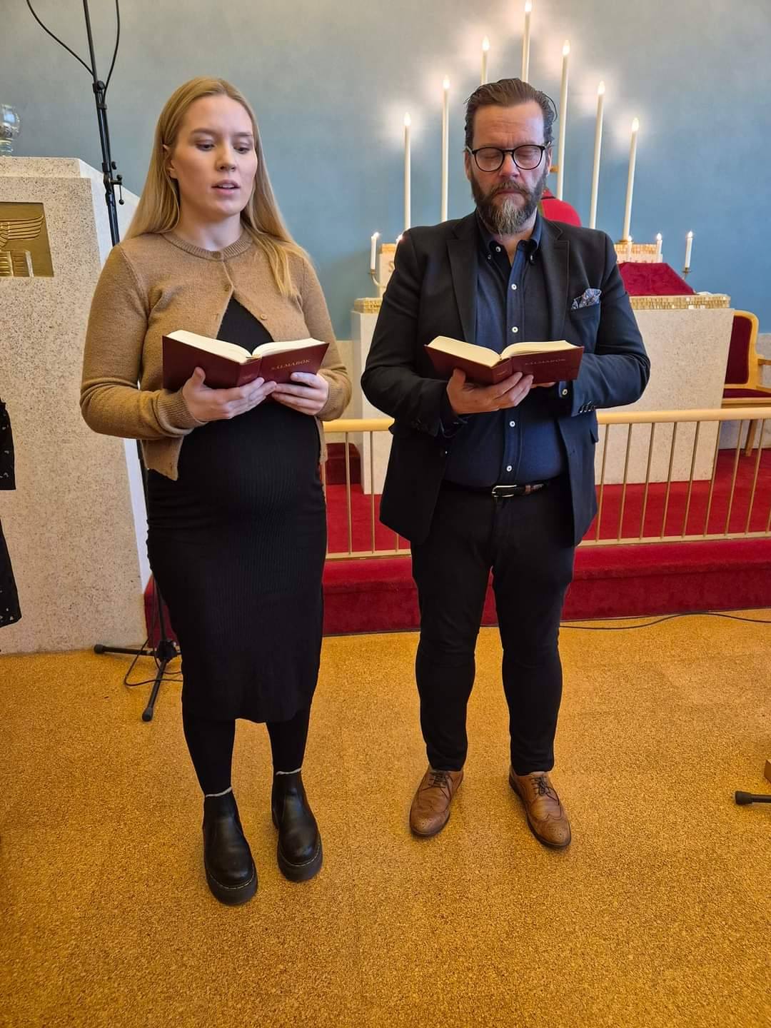 Nemendur námskeiðsins sáu um að semja prédikun og kirkjubænir og völdu sálma.