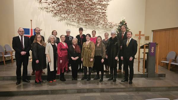 Á meðan söng Kór Ísafjarðarkirkju acapello sálminn Með gleðiraust og helgum hljóm.