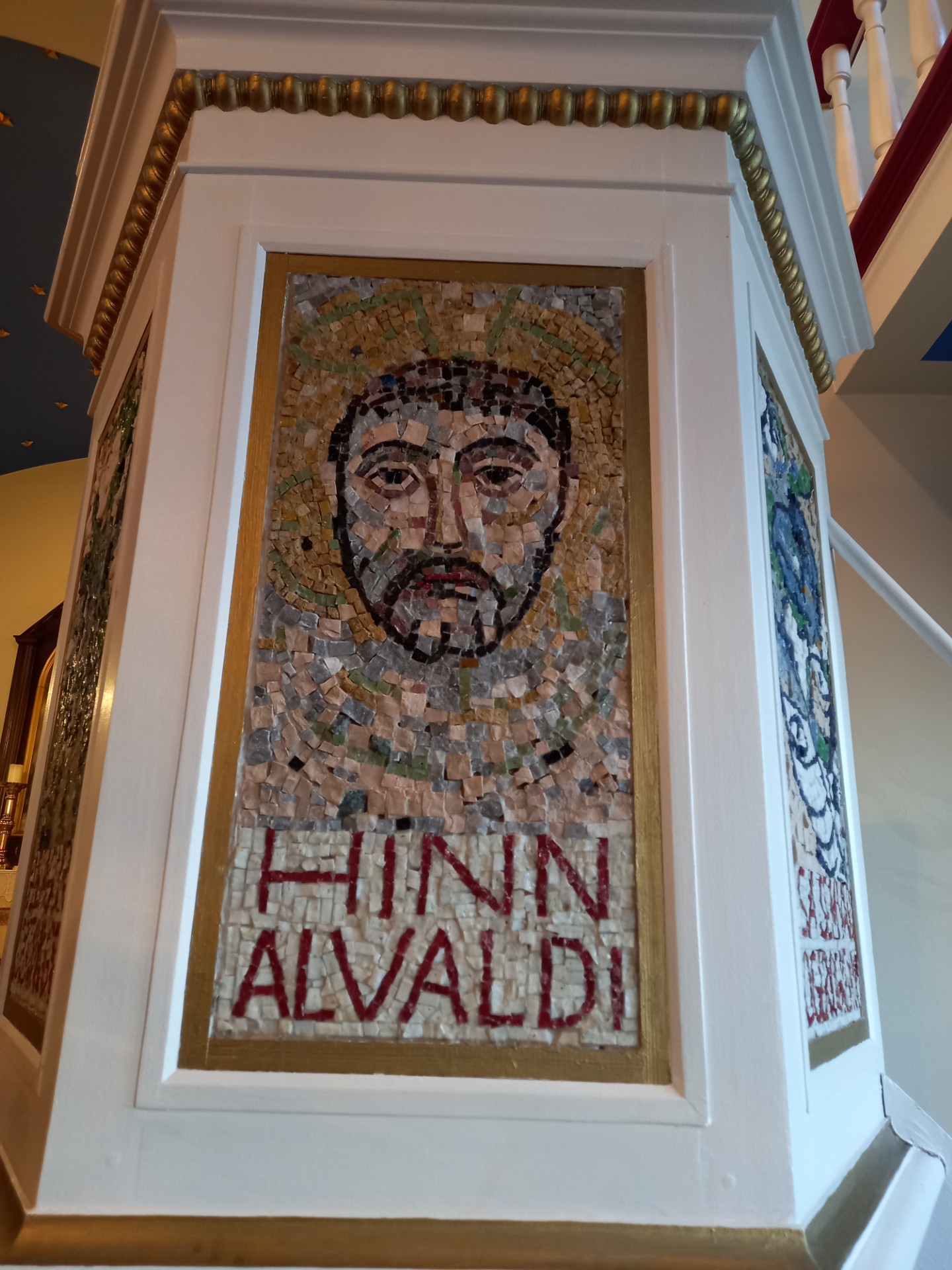 Síðan er mynd af Erni Bárði, altaristöflunni í Bíldudalskirkju, Tálknafjarðarkirkju og loks mynd af prédikunarstól Patreksfjarðarkirkju eftir Erró.