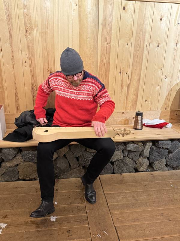Þar léku Jón organisti og Eyjólfur flautuleikari á harmóníum og langspil.