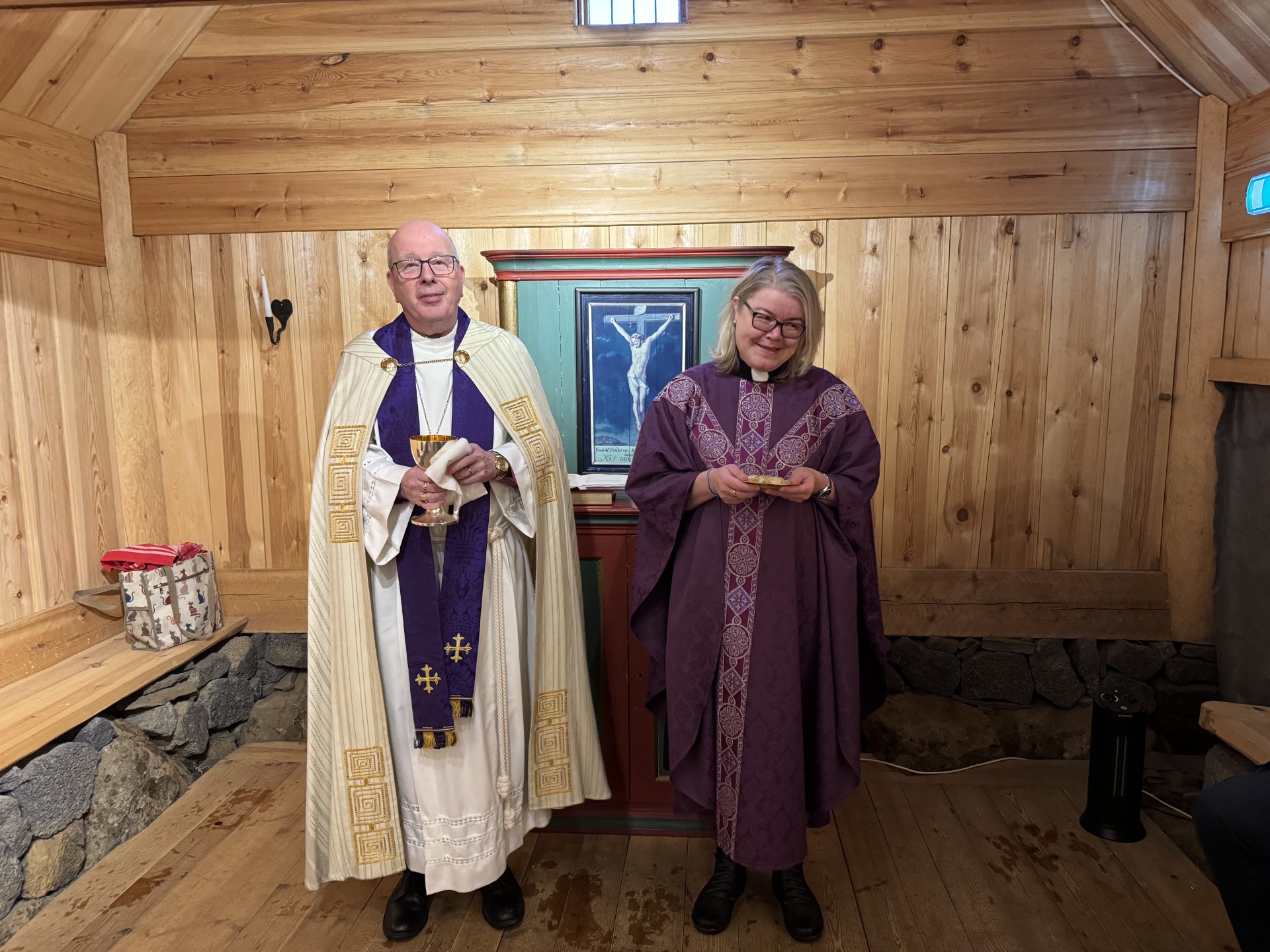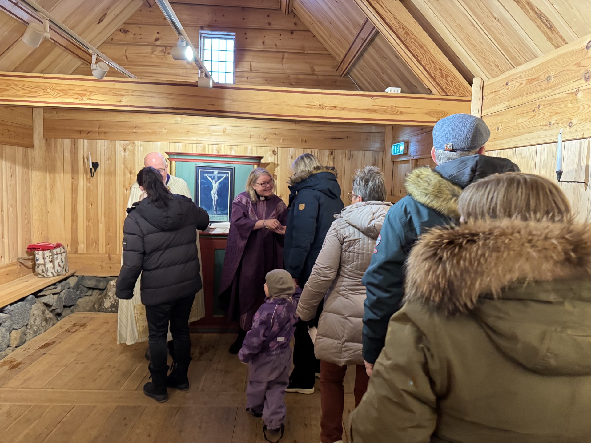 Áður en kom að altarisgöngu gekk söfnuðurinn út í frostið og inn í Þorláksbúð þar sem útdeiling altarissakramentisins fór fram.