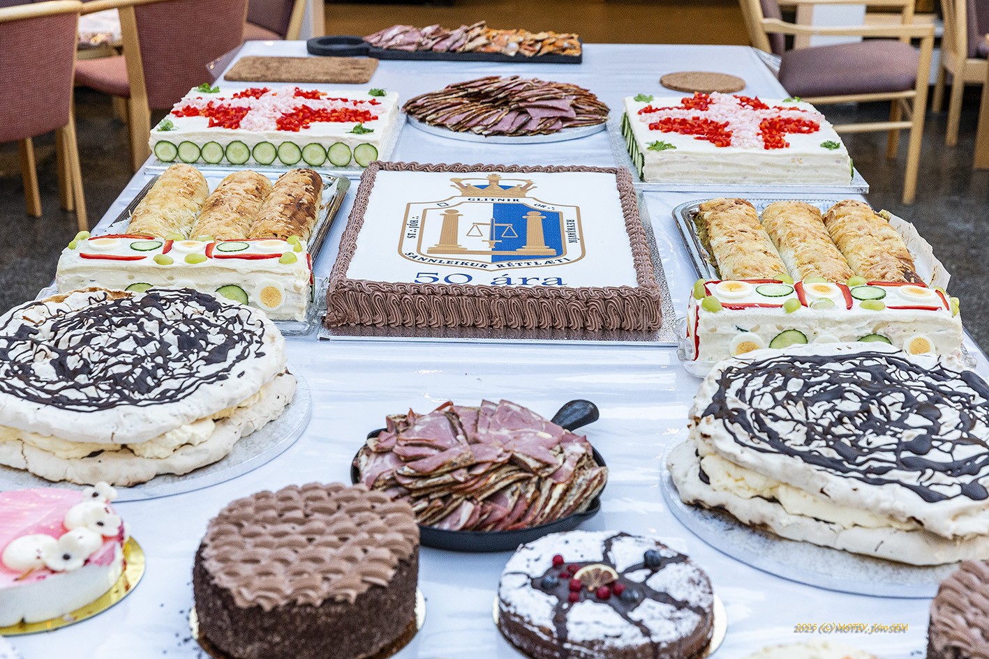 Glitnisbræður buðu síðan til stórveislu í safnaðarheimilinu að athöfn lokinni og má sjá veisluborðið hér fyrir neðan.