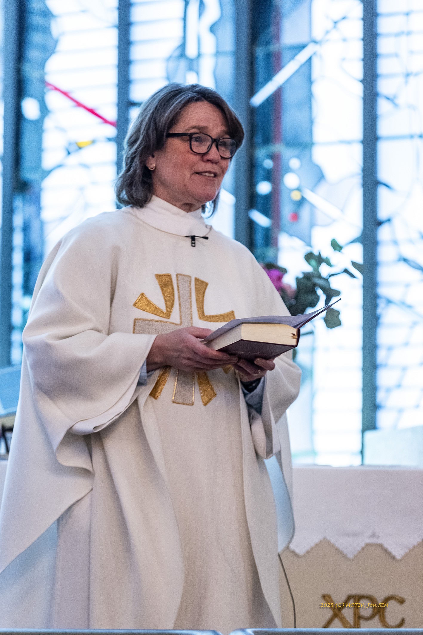 Sigríður Kristín Helgadóttir prestur í Fossvogsprestakalli þjónaði fyrir altari ásamt messuþjónum og fulltrúum frá stúkunni Glitni.